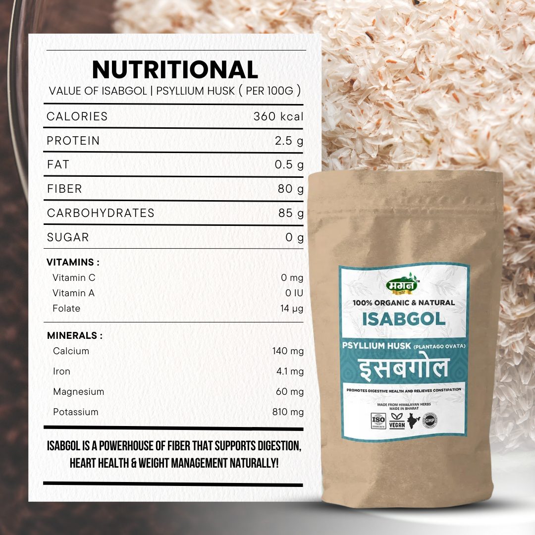 Isabgol a natural fiber supplement that promotes healthy digestion and relieves constipation. It aids in regulating bowel movements, supports gut health, and helps manage weight by keeping you fuller for longer. Isabgol is also beneficial for heart health by assisting in cholesterol control. Add it to water or juice for a convenient daily fiber boost.