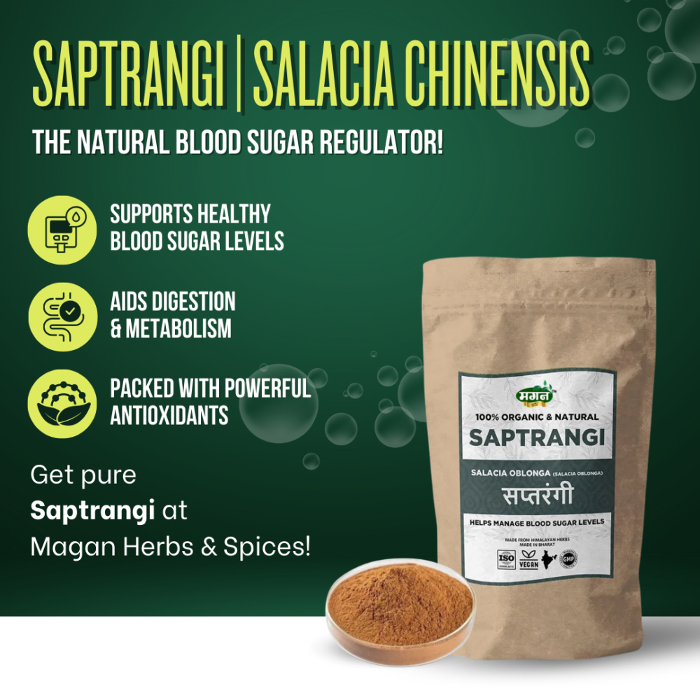 Saptrangi, Derived from the Salacia Chinensis plant, it supports blood sugar regulation, aids digestion, and promotes weight management. Rich in antioxidants, Saptrangi helps combat oxidative stress and supports overall wellness. This natural remedy is widely used in Ayurveda for its medicinal properties, making it an excellent choice for those seeking holistic health solutions.